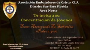 « All Events This event has passed. Concentración de Jóvenes Area Norte CLA September 14, 2019 @ 2:00 pm - 5:00 pm « Semana de la Biblia Dia del Maestro y Cierre de Campaña » Add to calendar Google Calendar iCalendar Outlook 365 Outlook Live Details Date: September 14, 2019 Time: 2:00 pm - 5:00 pm Organizer Emarely Phone 229-216-0266 Venue Igl. Legado de la Cruz 729 NE 2nd St Ocala, FL 34470 + Google Map